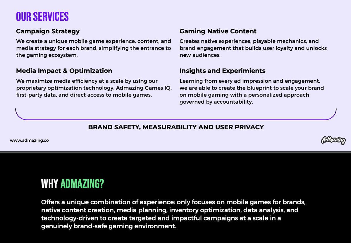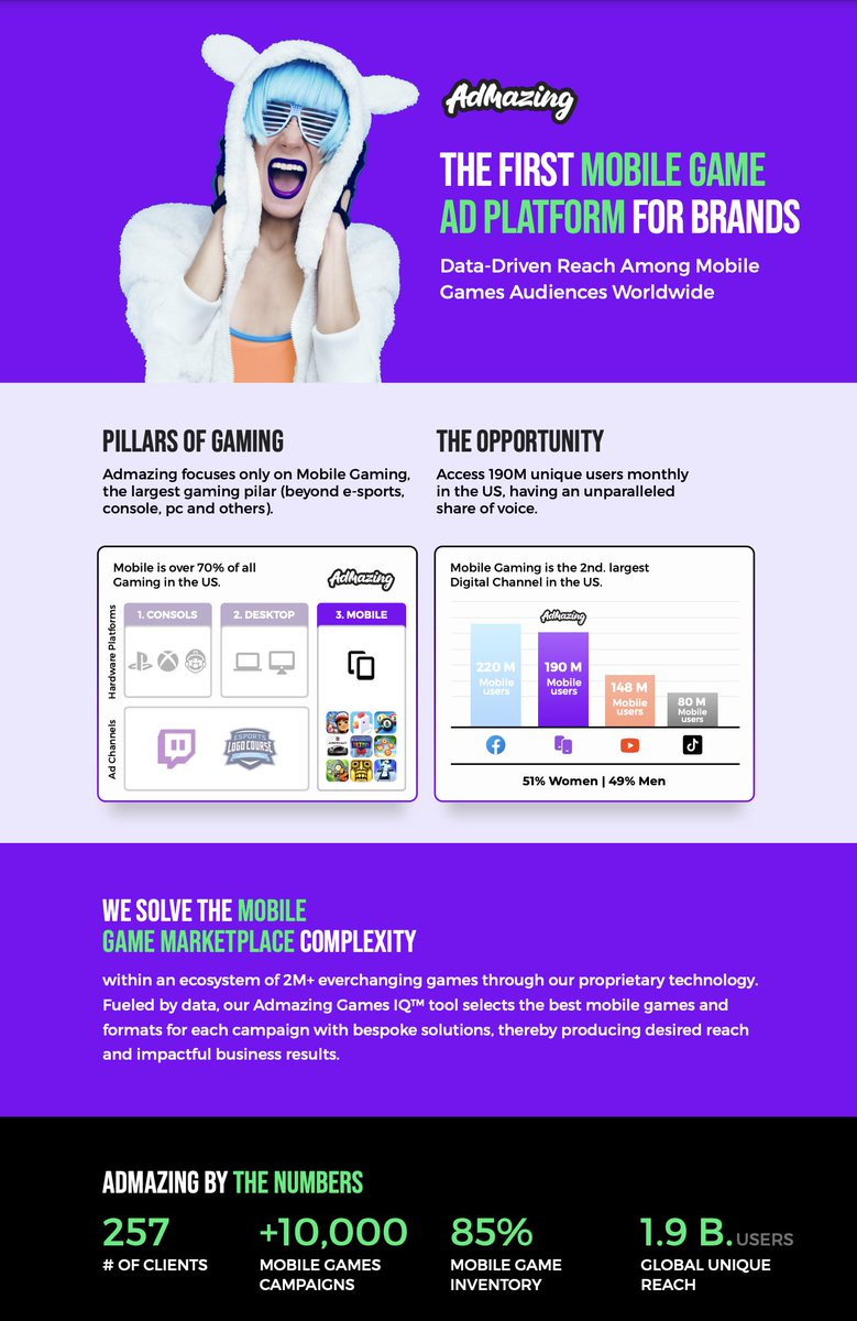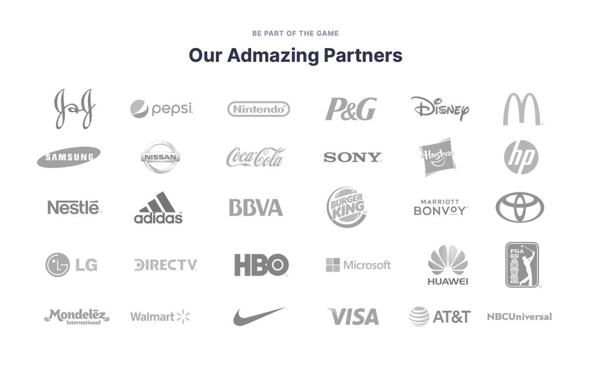Hoy, Admazing trabaja con más de 220 marcas globales, incluyendo múltiples empresas Fortune 500, ayudándolas a ejecutar campañas publicitarias de alto impacto dentro de videojuegos móviles en todo el mundo.