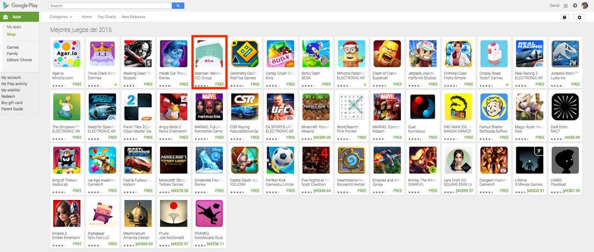 En 2014, lanzamos Apensar, un juego móvil de palabras que superó los 40 millones de descargas a nivel mundial. Apensar (Wordie en inglés) fue destacado entre los Top 50 juegos de Google Play en 2015, se posicionó en el Top 10 de juegos más descargados en más de 110 países y recibió más de una docena de premios.